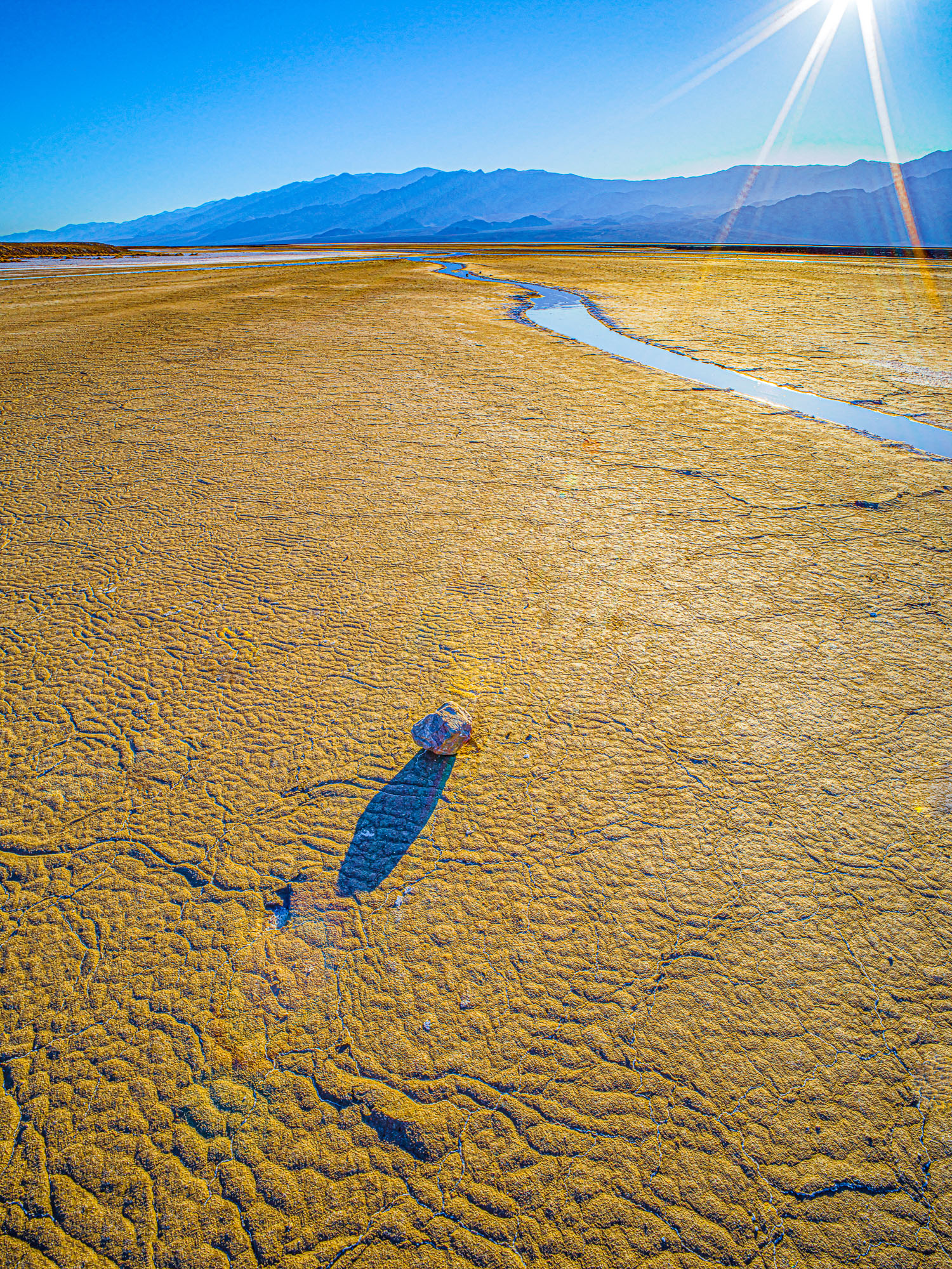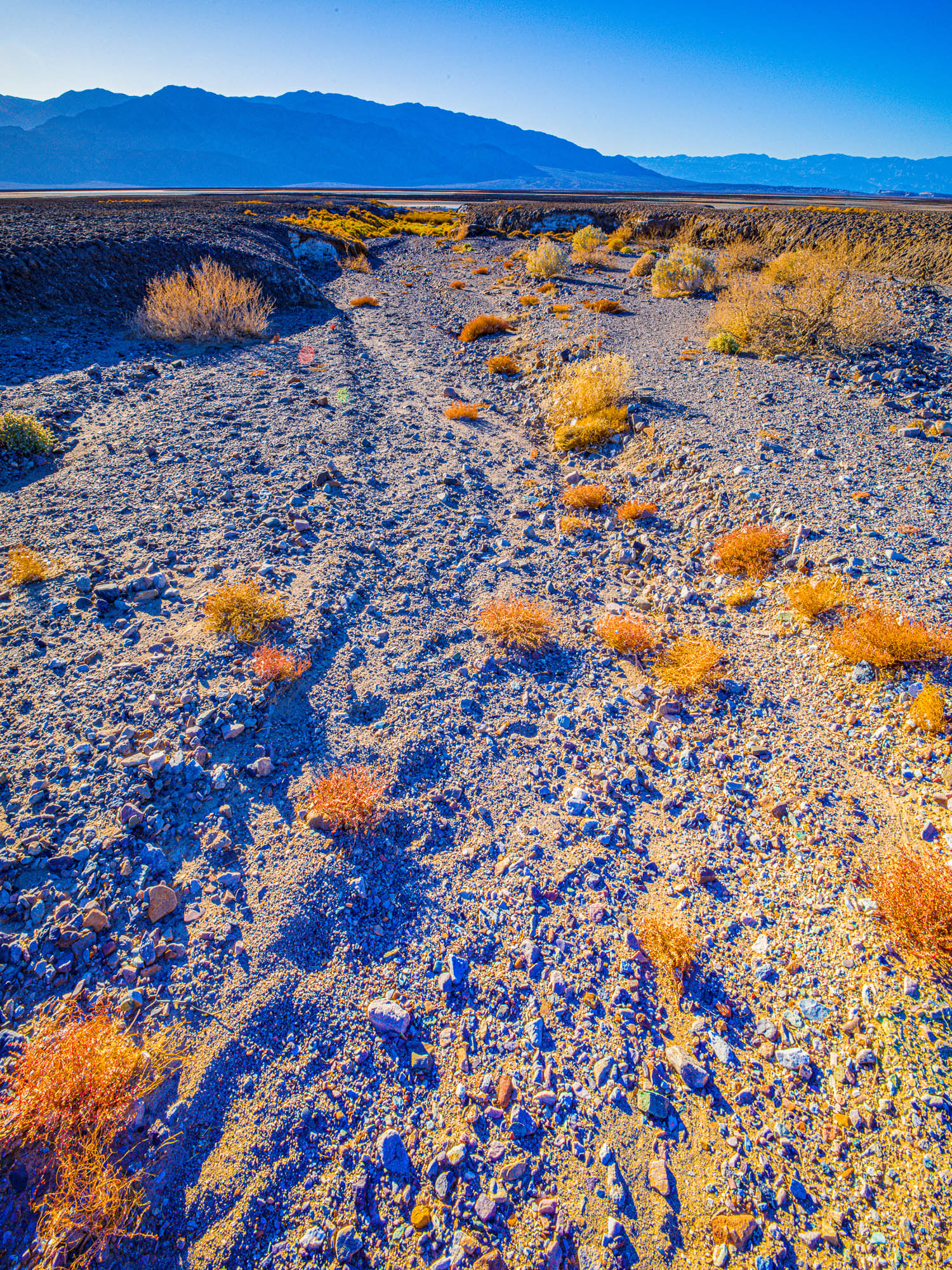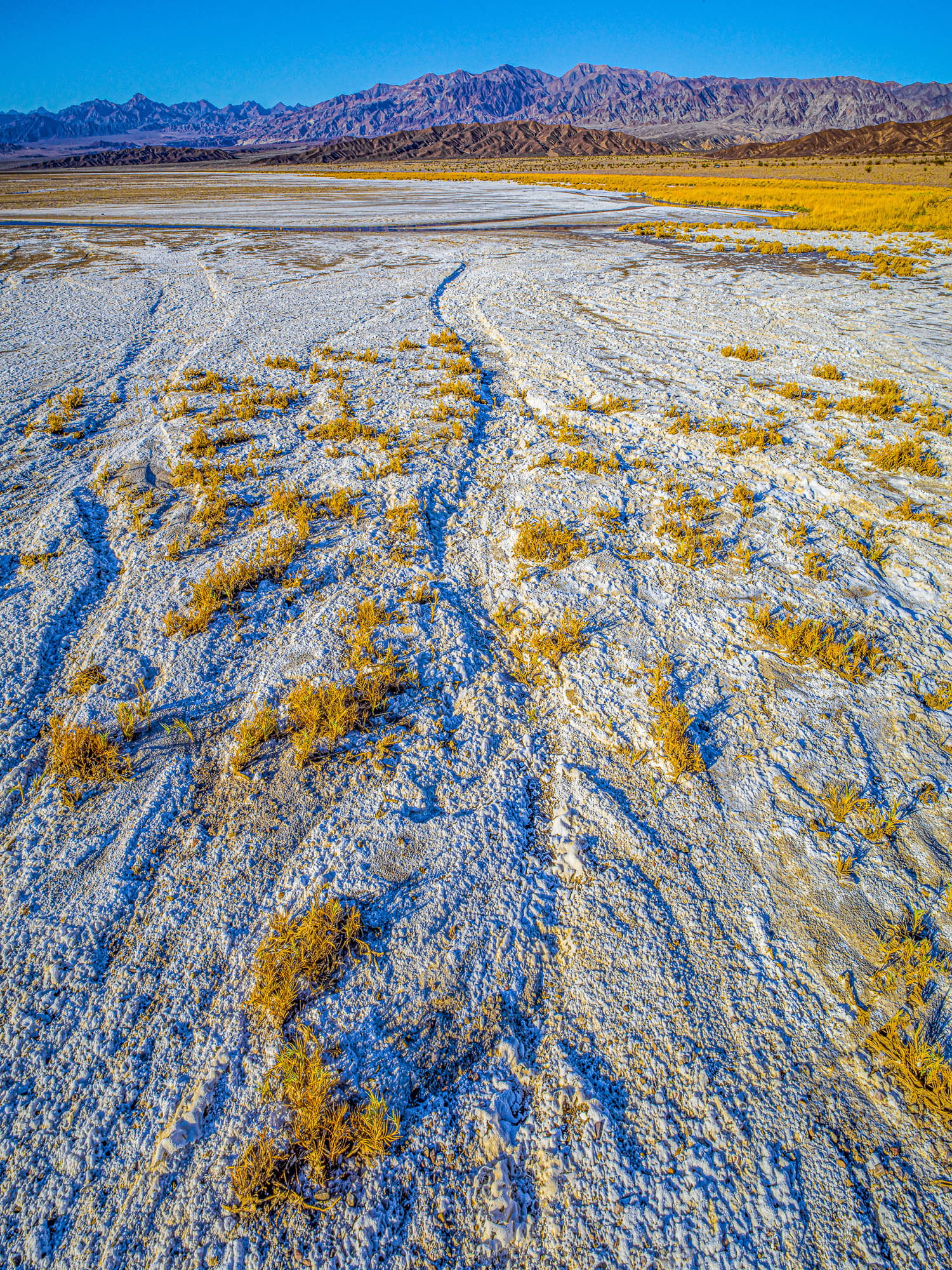 There is clarity in a playa. What was once filled with water is now a torrid landscape. Seasonal streams flow through basin sediments to form fractured and fissured shapes that become lines when viewed from a distance. These forms are simple and the lines leading. They led me onward this afternoon into the depths and length of this playa.