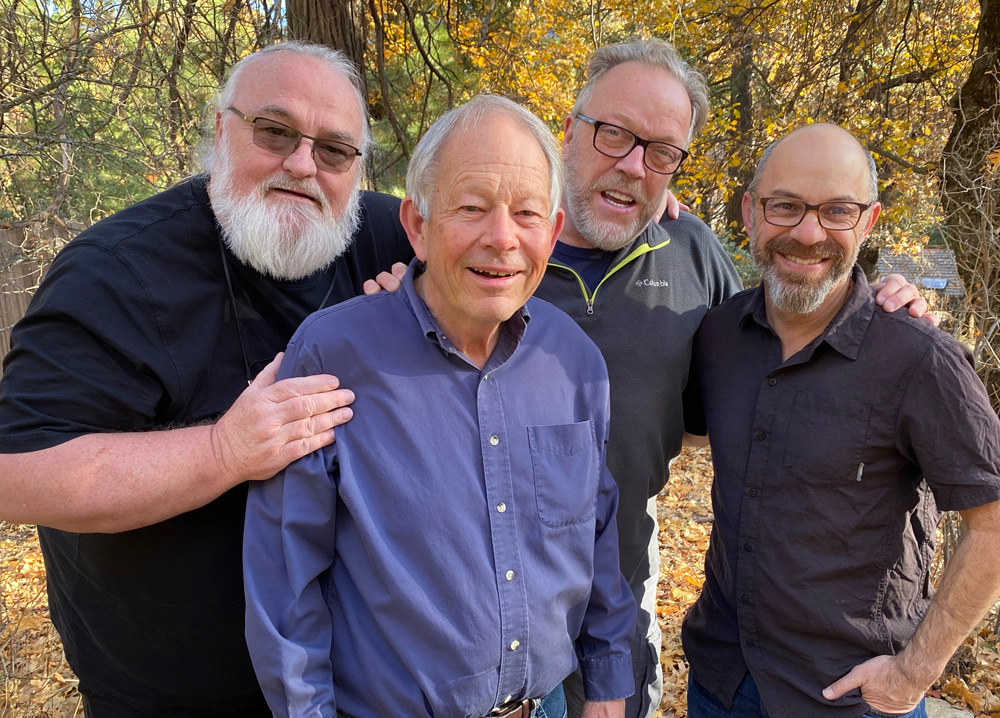 During this adventure, we bumped into a number of friends like William Neil, Charlie Cramer, David Chew, and others. It was like an old home week in Yosemite NP. While visiting Charlie at a workshop he was doing, we did a group photo and asked someone to use my iPhone to shoot a photo of the four of us. I ended up making a 17×22 of this image as you can see below with astounding quality considering it came from an iPhone. We will provide a download link soon.