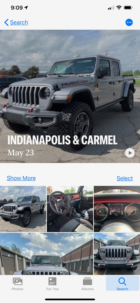 You can also see all of your images sorted by date in months, days, and years. And that’s not all. I can also type words into the search field, and the Photos app magically knows what you are looking for. I type the word “Jeep” in, and it finds all the pictures of Jeeps. I can do the same thing for “cat,” “dog,” “red shirt,” “fire truck,” etc. It’s really cool to do.