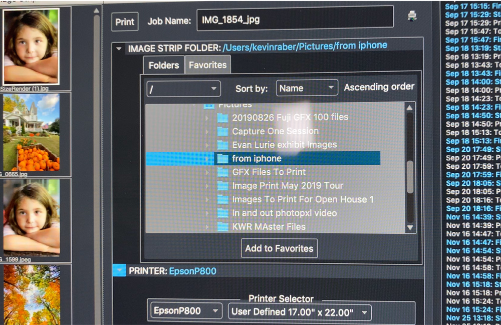 I then sent these files to my studio, where I have four different printers. Using my Epson P800, I made 13×19 and 17×22 prints. My printing workflow works through ImagePrint software by Colorbyte. I dragged the file onto the layout tool and then sized the image to have a one-inch border around the printed image. I am a big fan and user of ImagePrint. It provides the best color profiles out there and is one of the most versatile printing solutions there is. See my other articles and videos on ImagePrint here and here.