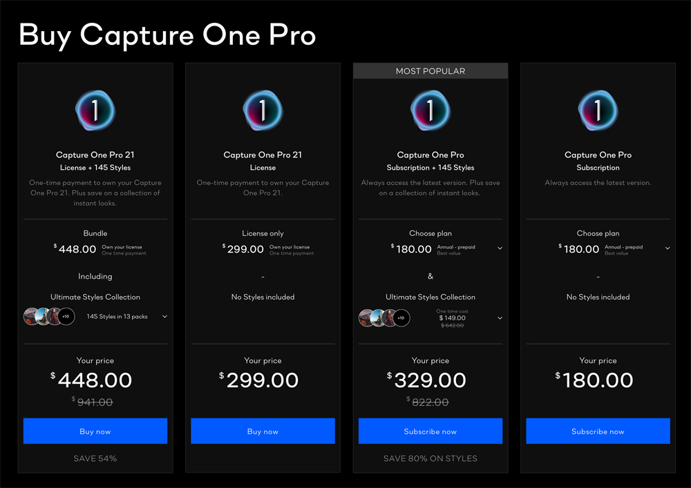 Capture One 21 is available as a perpetual license or subscription: