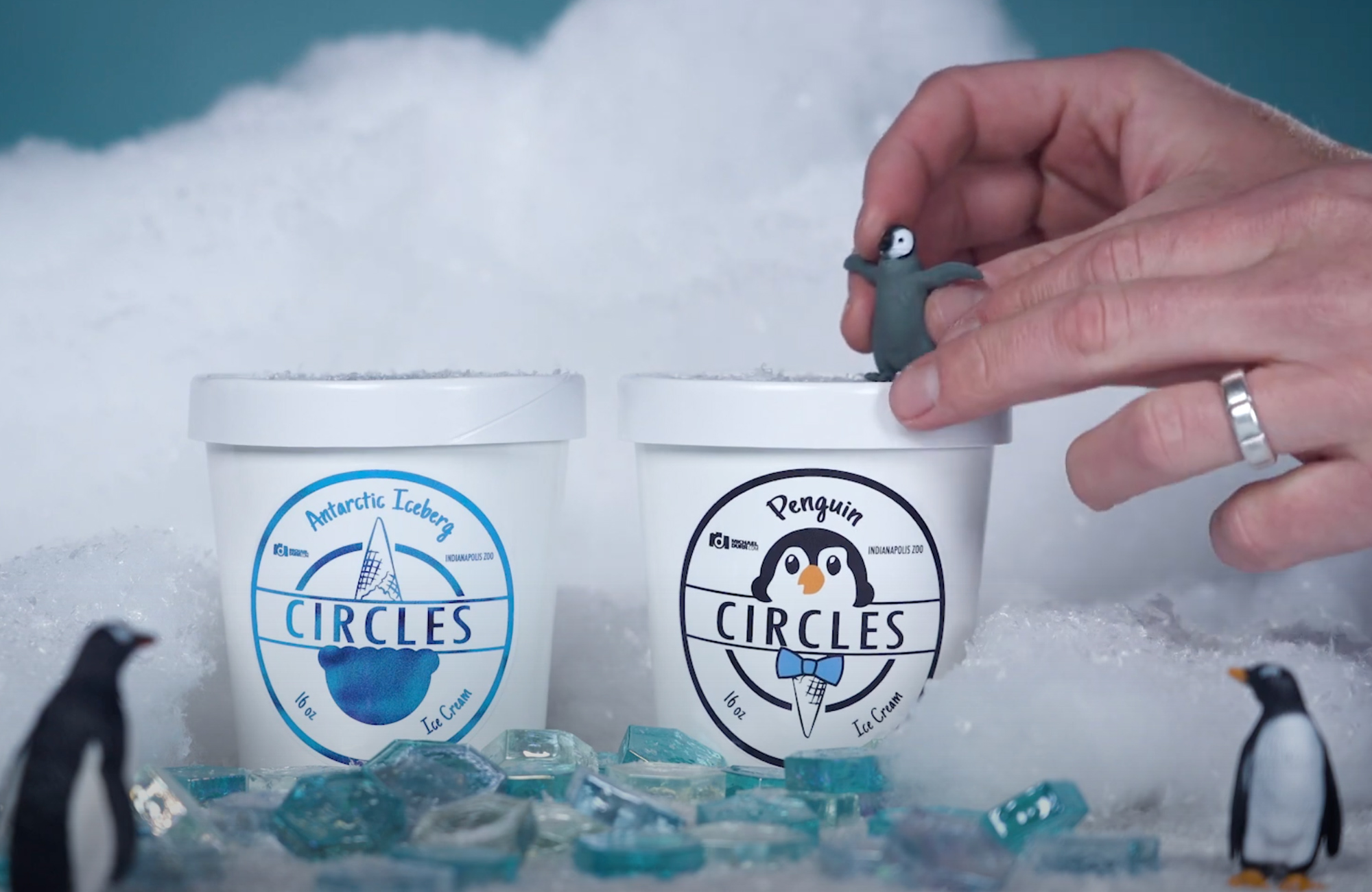 The videos below will explain what Michael wanted to do and how he did it. He kept this a secret from me as he sometimes does because he likes to surprise me. As always he succeeded in his mission. He managed to work with a custom ice cream maker Circles Ice Cream, to invent two ice cream flavors with an Antarctica twist, and then in turn worked with the Indianapolis Zoo’s Penguin Exhibit to raise awareness.