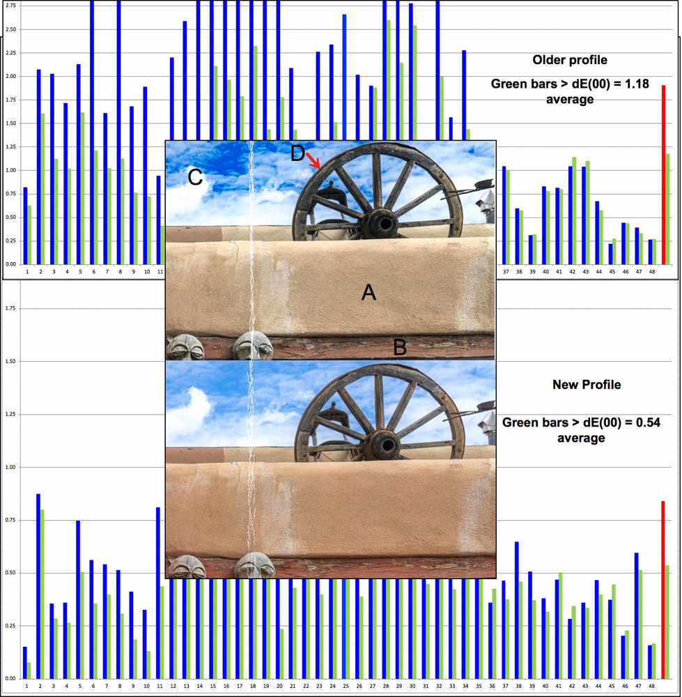 But using data to provide a visually consistent impression of what we perceive when looking at the colors is a difficult mental transition; so, in the context of measuring the extent of inaccuracy between image file numbers and the numbers read from the print, what if there were disconnects between what data may lead us to believe versus what we see on paper?