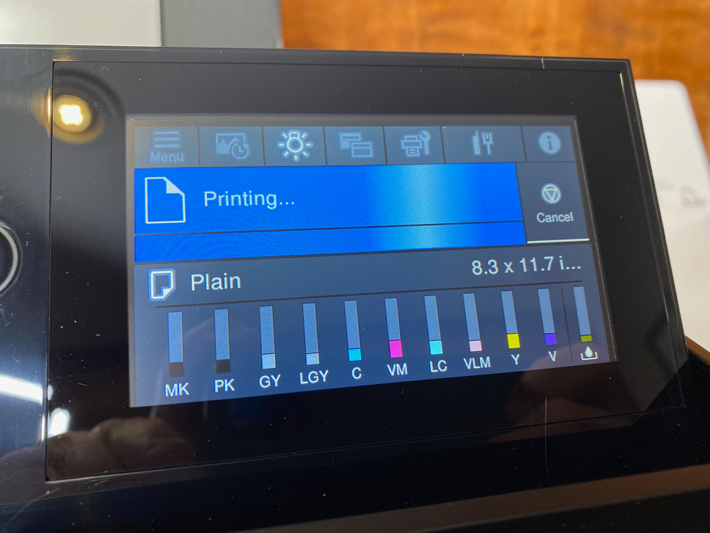 You also use this screen to check the status of the ink supply, the time for auto shutdown, whether the internal print light is on or off, as well as the paper type and size that the printer will print on. It’s all pretty intuitive and easy to master.