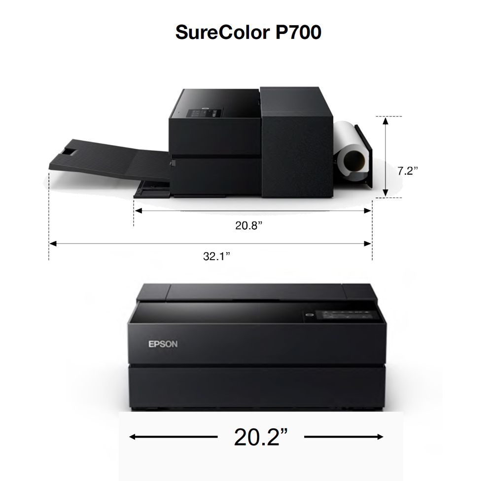 The printer, as you can see from the photos, sits next to my Epson PictureMate 400 and the P700 takes up a footprint of 20 inches wide and around 21 inches deep with the paper catch tray closed. The height is just a little over 7 inches.