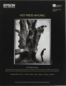For testing and when I need a matte paper, I use the Epson Hot Press Natural. This is a real flat matte paper with a slightly warm tone to it.