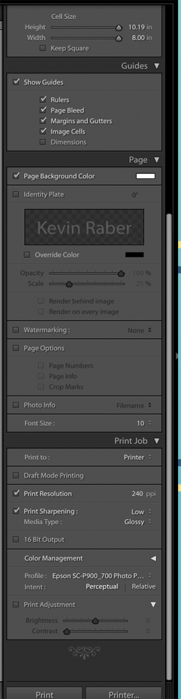 You now have a choice or two to make. Do you go the hard way or the New Epson Way? The hard way is not that hard but it will seem that way compared to the Epson way. Most people will want to print from Lightroom or Photoshop because that is what they have been doing for years. There are a number of windows that need to be addressed and settings that need to be made to print from Lightroom or Photoshop. You can see some of these below. Or, you can make your life easy, which is what this printer is all about, and print from Epson Print Layout.