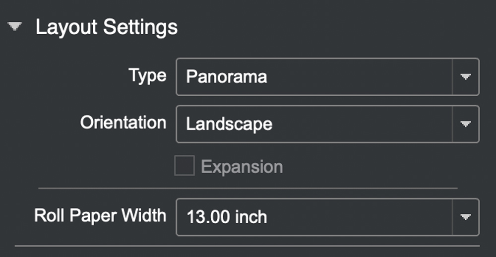 The P700 printer accepts 13-inch wide rolls and thus allows you to make a panorama print. You flip down a door on the back of the printer that then serves as a cradle for the roll paper. You select the roll feed option on the front printer panel and then also select the paper type. The rest is done in Epson Print Layout.
