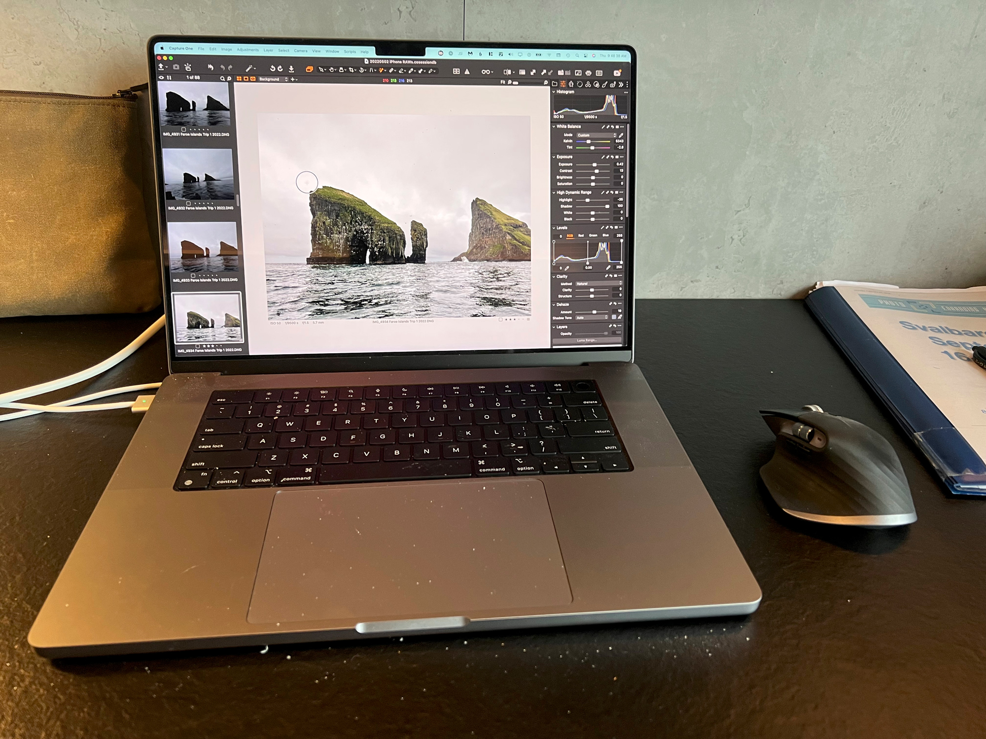I have with me a fully loaded out MacBook Pro 16 inch (2021) with 64GB RAM and 4 TB SSD. In addition, I have an SSD drive with my Capture One catalogs as well as a separate SSD drive with my Lightroom Catalog. I have Capture One, Lightroom, the TOPAZ suite, NIK Collection, and many other apps like PTGui and Helicon Focus. I also have the Luminar Neo and 4 as well as Auroa HDR. So I am pretty loaded up for anything I may need.