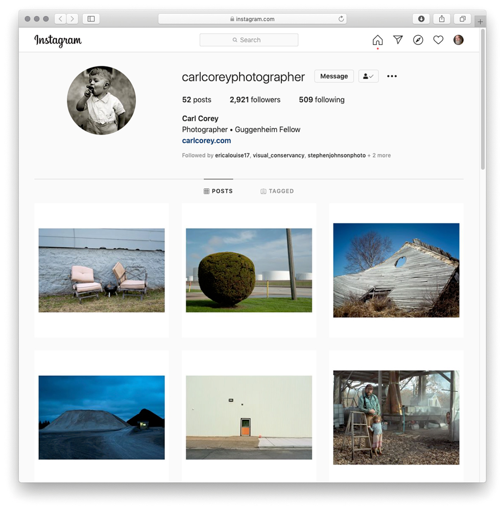 Carl’s success in landing the book deals didn’t happen by chance. They were the result of a lot of hard work. Schlepping folios around to museum directors and gallery owners. Carl printed a lot of shows that hung in places all over Wisconsin and beyond. His reputation was also expanded by coupling his photography to a social media platform he titled Americaville. While in fact, it’s a WordPress blog, the only words on his posts are an image number, and the location the photo was made. Ironically, while Carl doesn’t really like social media, Americaville has caught the attention of important people in the fine art photography industry and has helped advance Carl’s work considerably. In addition to loading images up to Americaville, Carl also posts to his Instagram account carlcoreyphotographer.