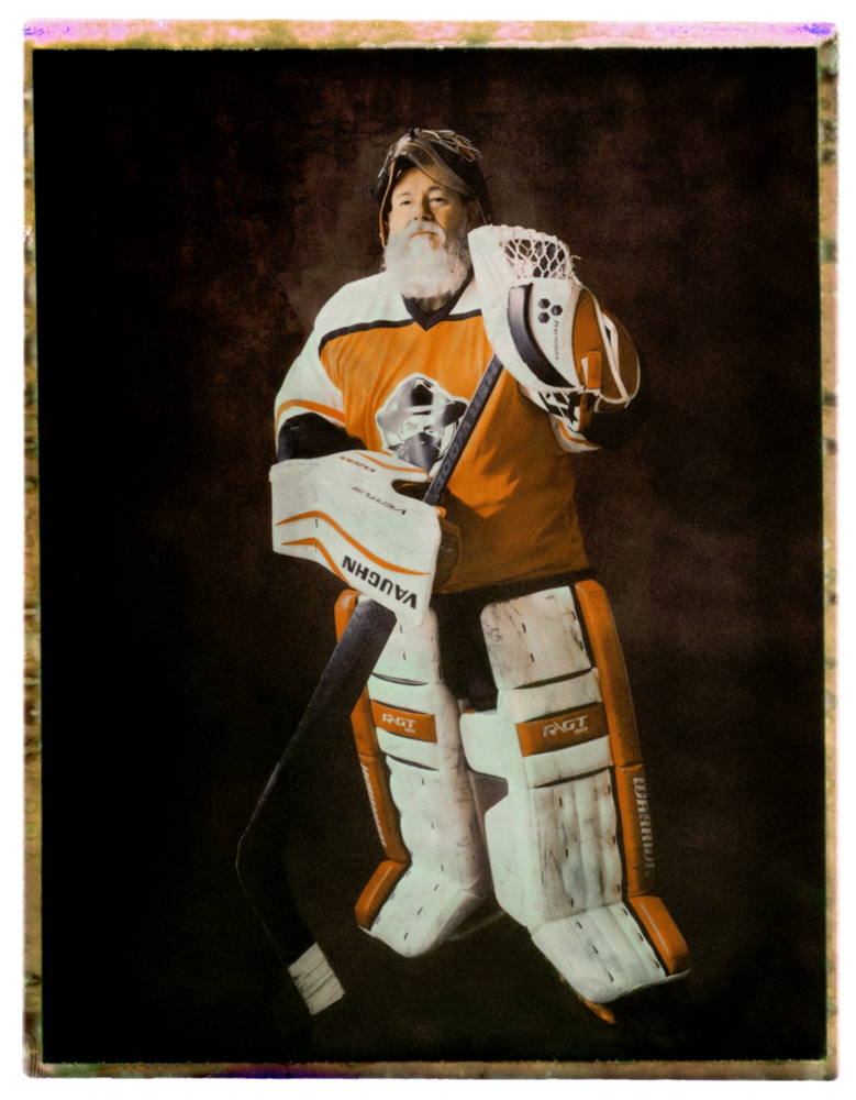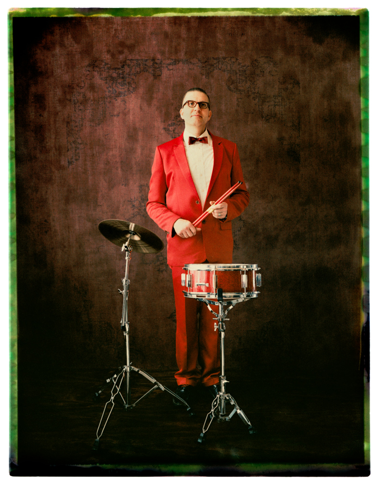 Actually having a studio again–someplace where he could have a set and shoot–prompted him to hang a background and start shooting studio portraits. Not satisfied to use a current modern digital camera, Carl decided to get an old Mamiya Universal 6×9 rangefinder camera. He also came across a bunch of outdated FujiFilm Instant Film and used it to start a new project called STUDIO PORTRAITS. In addition to having film backs for the camera, Carl also had a custom adapter fabricated so he could mount a Leaf Aptus digital back on the camera. Carl named his camera The Lud-O-Flex. (I call it a Frankencamera)