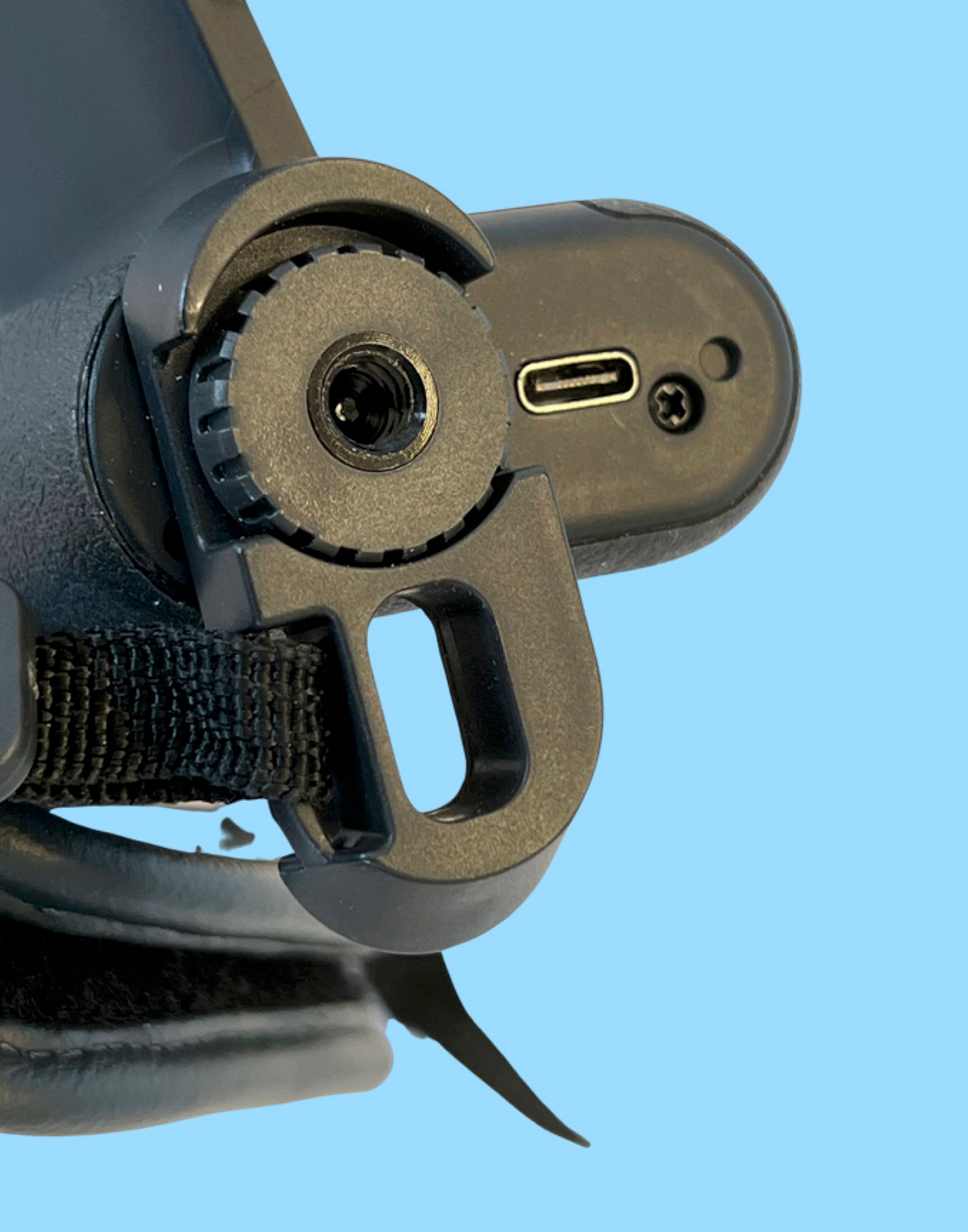On the bottom is a standard tripod mount. I put the small Peak Design plate in this so I can easily mount it to a tripod. Here you will also find the USB-C charging port and a connection for a camera strap.