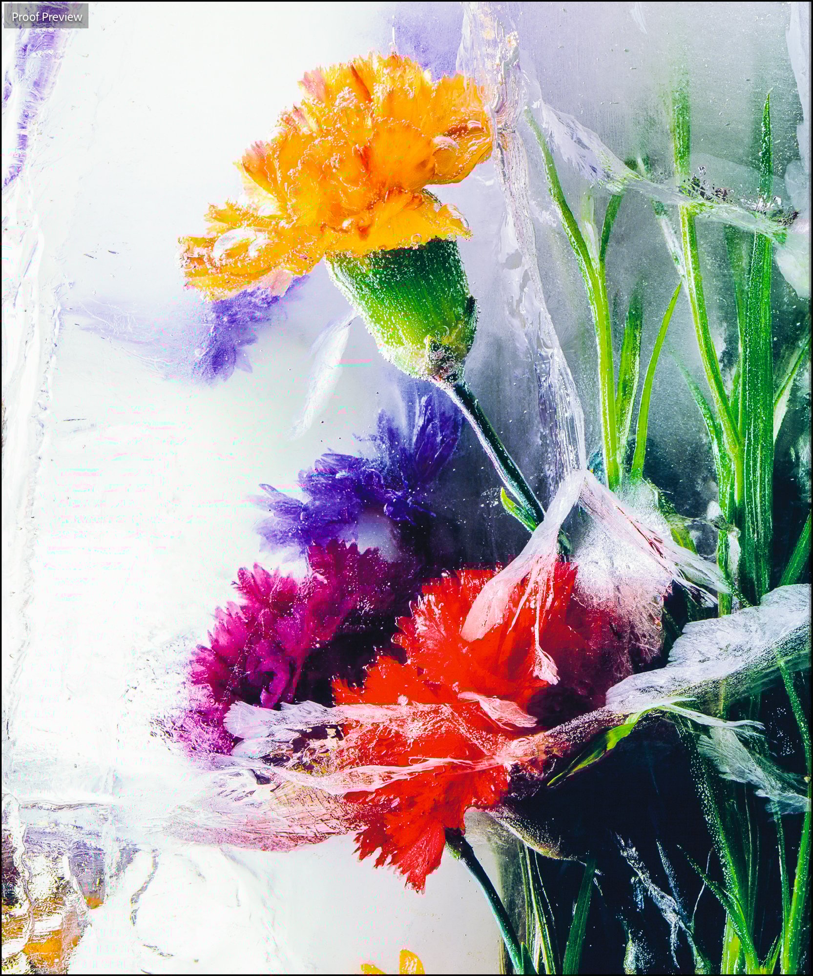 Here are screenshots of the first example in soft proofing of my frozen flowers image (which Kevin seems to really like-he even put his hands all over it when it was on the viewing booth).
