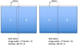 Shifting the back maintains perspective and eliminates challenges associated with auto stitching software when the scene includes flat horizons and moving clouds. Shifting left/right anywhere between 10-20mm will produce two images that can easily be aligned horizontally and stitched together. Stitching using back requires very little image overlap because the lens never moves, and therefore perspective does not change. In the case of 18-20mm shifts there is no need for a third center image.