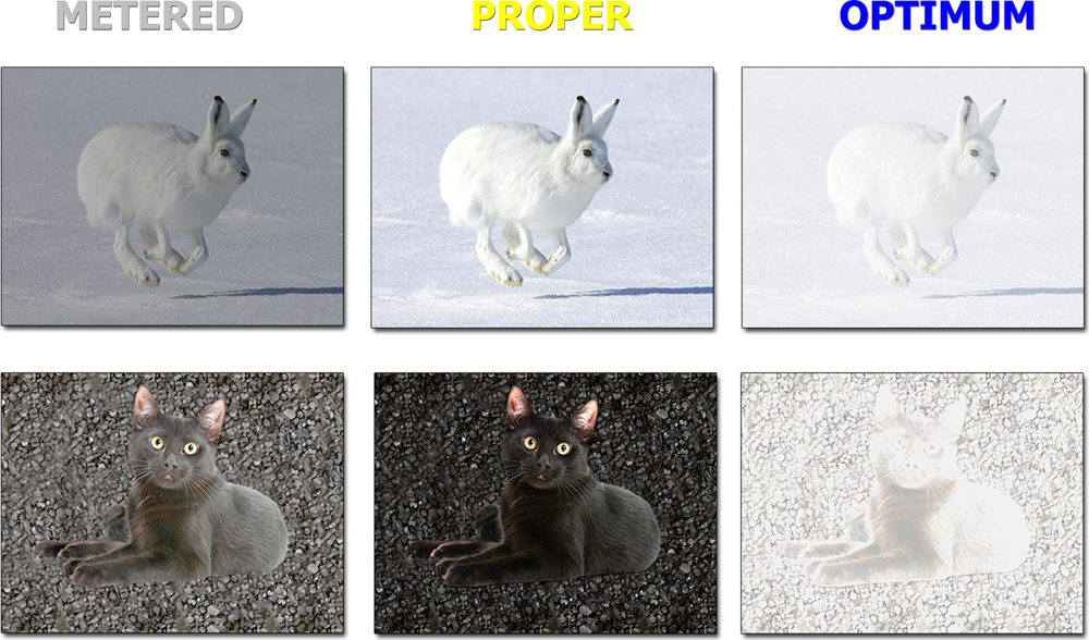 - ➢The Optimum exposure places both the white rabbit and the black cat to bright white! The white rabbit is even brighter than its “Proper” exposure. And, in the case of the black cat, the “optimum” exposure places the black cat to a surprising bright white… as bright as our optimum white rabbit exposure.