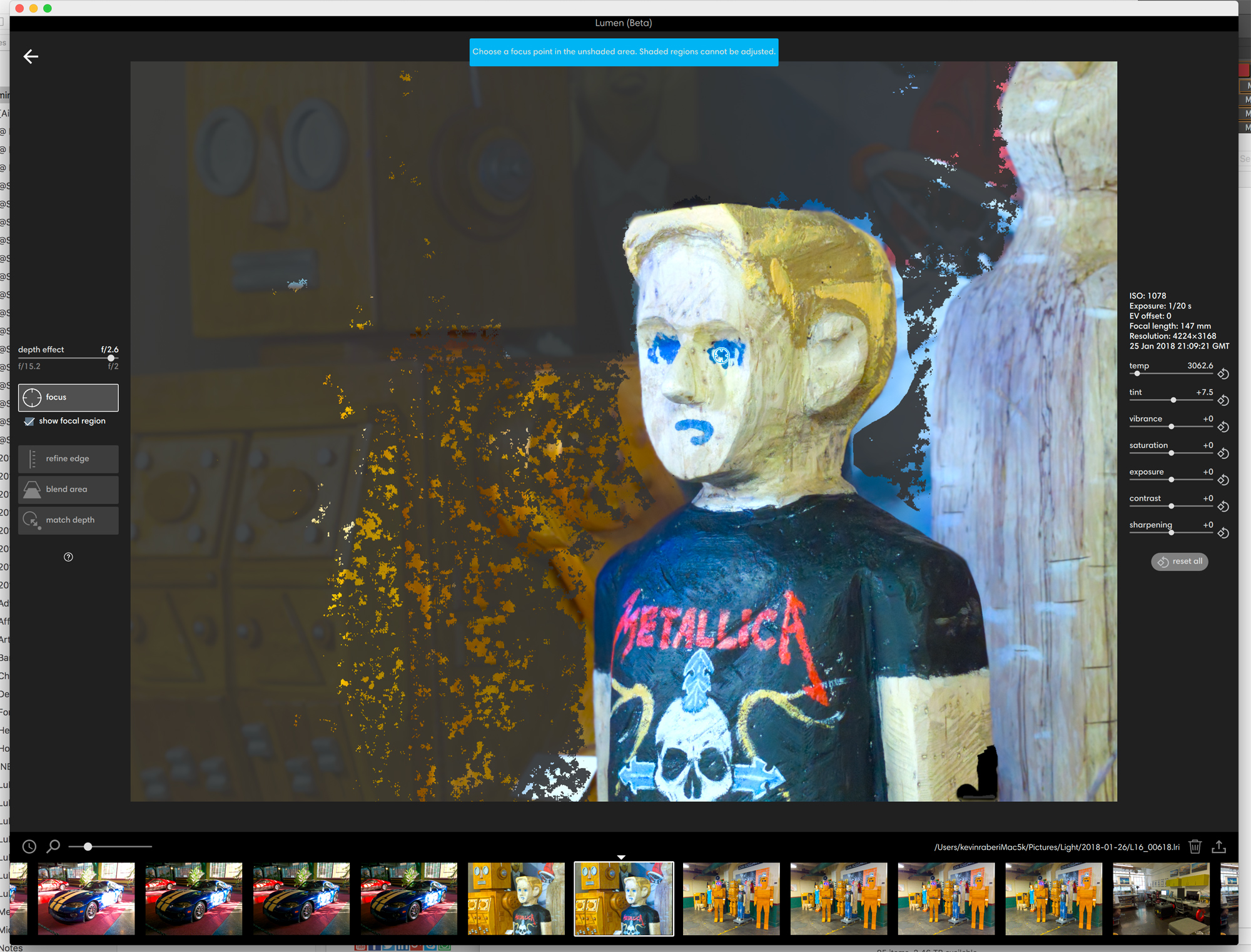 You’d select an area you wanted in focus, and this is where you could vary the focus. The software would allow you to select border areas or edges, from which you could separate in-focus and out-of-focus areas. Then it would take a few minutes to process the image. However, the results in almost all cases were complete crap.