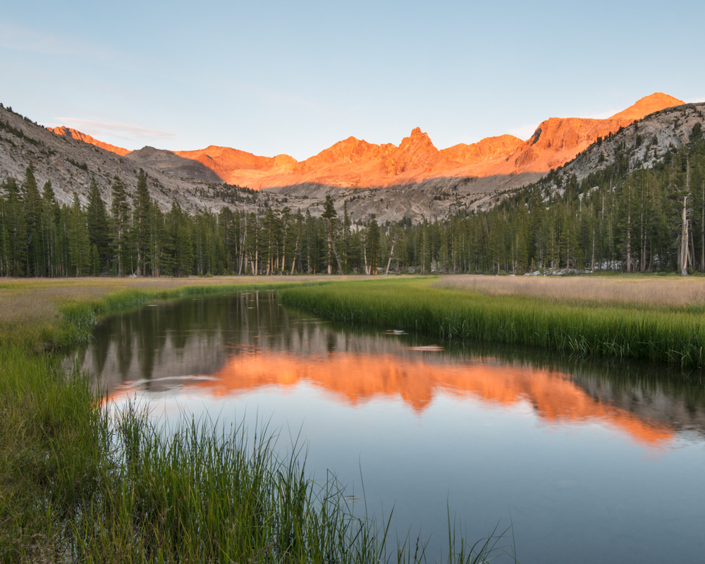 As a photographer, the Sierra Nevada Mountains is a difficult subject to capture, especially during the long days of summer. I hiked with my camera and lenses stuffed in the top of my backpack. The last thing a backpacker wants are items that are swinging around and not secured. This approach was a good idea, especially after falling into a creek. During most of the day, I would never dream of taking out my camera. Instead, I read novels and washed my socks and underwear while my wife painted watercolors. I also thought about where I might walk to when the lighting improved.
