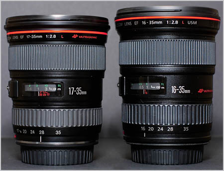 The body finish appears more durable and stronger against the rather plastic-like finish of the 17-35L lens. As you can see from the above picture, the new 16-35L is almost a 1/2 inch taller. However, they weight about the same with the 16- 35L only a mere 50g heavier.
