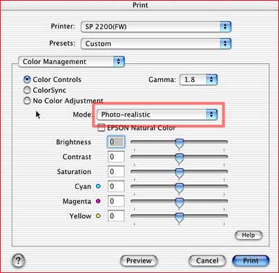 Here are my recommendations and workflow for producing neutral grayscale prints with the Epson 2200 on Epson Archival Matte paper using the optional Matte Black ink. I use a Mac running OS X and Adobe Photoshop 7, so you may have to modify the workflow somewhat for your particular operating system.