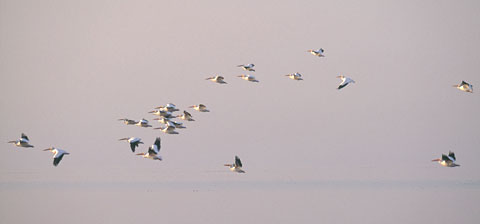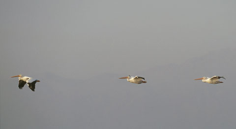 Pelicans in Flight, Salton Sea, 2000