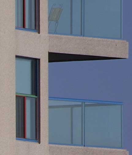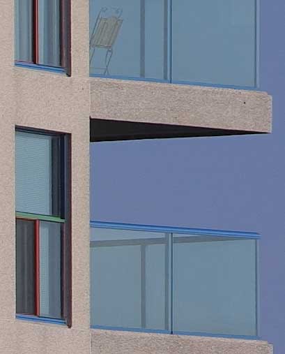 The results don’t need much interpretation. What we see is that wide open, at f/5.6, the 100~400mm lens is quite a bit sharper than the 70~200mm and 2X combination. To keep this page as small as possible I’m only showing the corners of the frames, which obviously are not as sharp as the center, but the difference is still visible there as well.