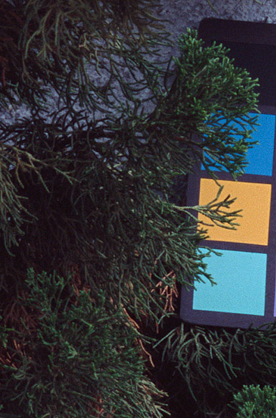 A few clarifications: This was solely a test for resolution, not color. PhaseOne did not have any P45 profiles available when Bill developed these RAW files in CaptureOne software, so the colors are a little wild. Theoretically, digital cameras have the capability to provide more accurate color than film. After all, a scanner profile is made so that the colors on the film are reproduced accurately-and film introduces its own color distortions. I’ve seen excellent color from various digital cameras, including the PhaseOne P25. Excellent color is also available through use of Adobe Camera Raw, as it has beautifully smooth profiles for each camera it supports. Although custom camera profiles are notoriously difficult to get right, that would provide the most accuracy.