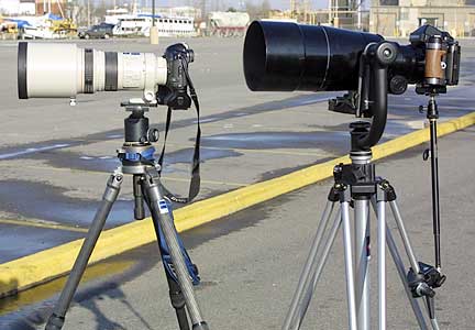 Certainly any lens of this size and focal length needs a very large and sturdy tripod. A mount like the Wimberley is alsode rigueur. On my recent trip to Bosque every single photographer there (and there were dozens seen over several days) used either aWimberleyorKirk King Cobragimbal mount with their ultra-long 35mm telephoto lenses.