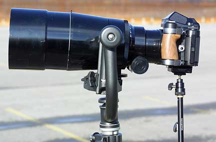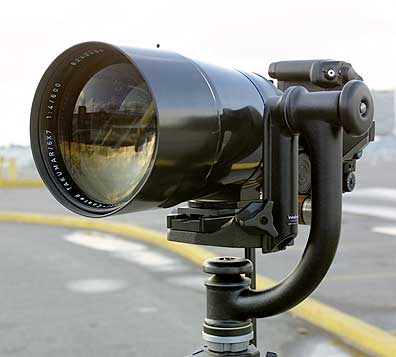 Filters: The 170mm lens diameter makes front mount filters out of the question. (You thought 95mm filters were expensive?) Instead the 600mm lens uses 77mm filters that screw into the rear element. (This gives you some idea of how large the rear mount of this lens is). This is reasonably convenient, though of course you have to remove the body to install and remove a filter. The use of a polarizer is awkward, though not impossible.