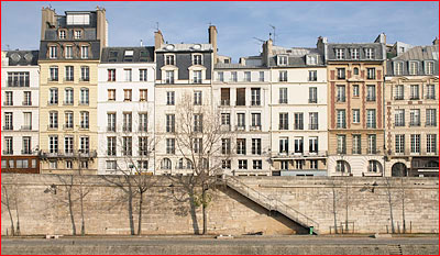 Let’s compare this scene with a similar scene in daytime. Not the exact same scene but pretty close. This one is of buildings along the Seine. In terms of location, when looking at the previous photograph the image below was taken from river level, by the left side of the bridge.