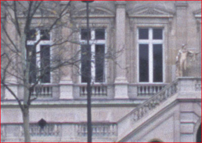 I want to feature comparisons between the three formats I used. I just received my films back from the lab, literally while I was writing this article, and just took a first look at them. This is taking place on January 20th, while I have already seen and raw-converted some of my Paris 300D photographs since late December. Why even use film? In one word: higher resolution. I don’t see another advantage at this point. Both medium format and 4×5″ will give me the possibility to make prints larger than from 300D files. I could equal medium format resolution by photographing with the 1Ds which would take medium format out of the equation. This leaves 4×5″ as the only format whose resolution is matched only by digital 4×5″ backs costing over 20k. The cost prohibits the use of such backs except by a very small elite. Plus, they are, for several reasons, difficult to use in the field. None of them use flash cards or microdrives and full 4×5 frame units are scanning backs which take photographs in 3 passes, one pass for Red, Green and Blue. This means that anything moving in your image will be shown as moving on the digital file, thereby severely reducing the range of subjects which can be successfully photographed. If I upgrade to a higher-resolution digital camera it will be to a Canon 1Ds or its successor. Upgrading to a medium format digital back does not offer, in my estimate, a significant advantage over the 1Ds once the format has been cropped to a rectangular composition (with square digital backs). I will leave 4×5″ backs alone for the time being.