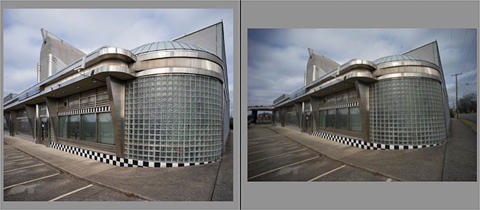 Example of an uncorrected and corrected image shot at the 28mm setting of the Tri-Elmar.