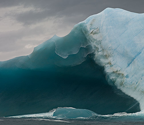 I shared this discovery with Bill Atkinson, another unrepentant tripod user, and he found essentially the same thing to be true. So we both proceeded to shoot hand-held with our H1/H2 / P45 systems both from the deck of the ship as well as when shooting from Zodiacs. My technique was to set the camera in shutter priority mode with a shutter speed of 1/500 sec (when using the 210mm, which was the main lens used for icebergs, whales, and distant vistas), and then let the camera set the aperture as needed; dialing in anywhere from +1 to +1.5 exposure compensation, depending on the amount of sky, bergs or glaciers in the frame.