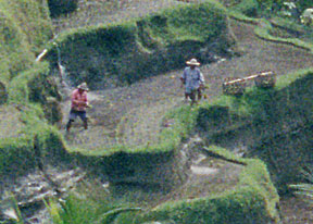 Bali is a relatively small island with a population of some 3 million people. It is crowded and even the rural highlands are intensively cultivated, mostly with rice terraces, but also with coffee, ginger, tapioca and a number of other crops which only grow in tropical highlands.
