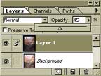 - Select theLayer Paletteand setOpacityto between40%and50%. This will allow you to see both layers at the same time. (Layer 1, the dark layer should be highlighted).