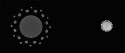 This image shows the circles of confusion for the Imagon with one of its ‘sink-strainer’ diaphragms in place.