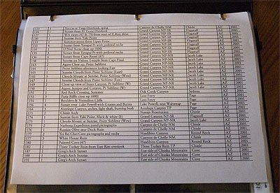 Filing is an important process. For me filing serves two main purposes. First, it guarantees that my originals are protected from damage and from dust. I currently use Bestfile binders for film originals because they are sealed binders. Second, efficient filing makes finding any given image quick and easy. To reach this goal I use a database listing the film file page number, the location where the photograph was taken, the date each photograph was taken, and other pertinent information. I keep a digital version of this database on my computers and a printed version in each Bestfile binder. I also keep a digital catalog, using Extensis Portfolio cataloging software, of all my digital images. Finally, I keep a virtual catalog of all my CD’s and DVD’s on each of my computers. Searching any of these databases or catalogs, based on what I am looking for, enables me to find any image within 5 minutes or so. Finding an image in a timely fashion is crucial to me since I receive orders for specific images daily and I have to find these images within a collection which, currently, consists of over 50,000 images.