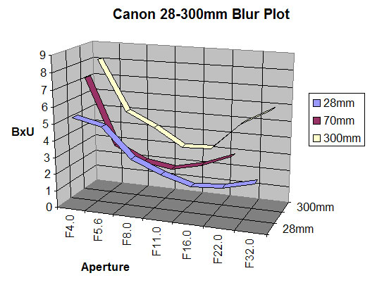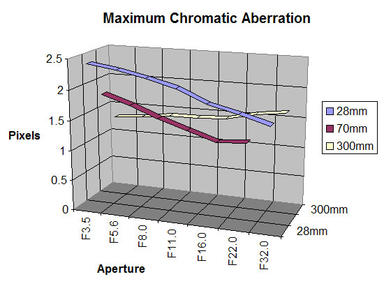 28mm 70mm 300mm F/4 4.9 – – F/5.6 3.2 7.33 8.1 F/8 2.5 3.4 5 F/11 2 2.5 4.1 F/16 2.1 2.3 3.1 F/22 2.6 2.7 4.9 F/32 – 3.4 5.9