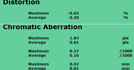 Chromatic aberration measures higher at all focal lengths than I expected from a lens in the price range. Distortion at medium and telephoto settings was moderate, but was quite strong at the wide end. It ranges from strong barrel distortion at the wide end to modest pincushion distortion at the long end of its focal length range.