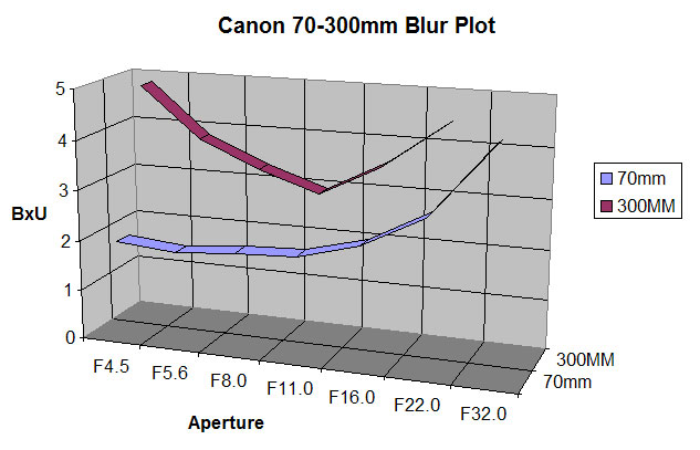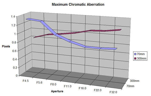70mm 300mm F/4.5 1.95 – F/5.6 1.84 4.83 F/8 1.96 3.84 F/11 2.02 3.33 F/16 2.34 2.94 F/22 2.99 3.57 F/32 4.42 4.46 Observation