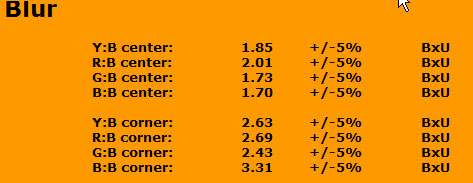 This lens measures well for blur. It is typical of a good quality medium telephoto zoom. As always the best aperture for sharpness is a couple of stops down from wide open, and at small apertures diffraction effects start to degrade image quality. F/5.6 is the best aperture when the lens is at its widest focal lengths and f/16 is the sharpest aperture at 300mm.