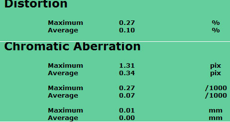 Chromatic Aberration is moderate, and unlikely to be an issue on prints under most circumstances.
