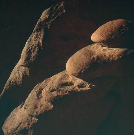 Mid-morning on our fourth and final day found us in Arches hiking to one of the arches (which turned out to be inaccessible due to rock slides). Along the way I found these side-lit rocks, resembling loaves of bread.