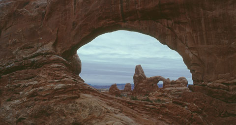 First light on our first day in Arches found us on a high ledge shootingTurret Arch. We’d hoped for some sun but the day dawned overcast. Even so, watching the day begin in this area of isolated splendor was not to be missed.