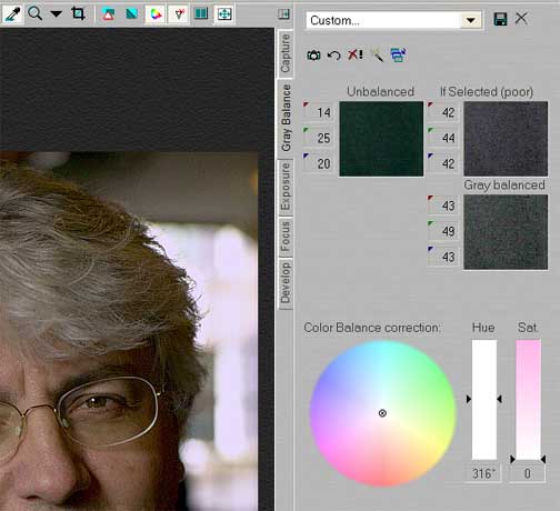 In Fig. 2 above we see theGray Balancetab. here you have the ability to place an eye dropper on a white point in the image as well as comprehensive tools for fine tuning colour balance, either in composite RGB or for each individual colour channel.