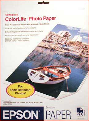 – Epson rates the light fastness of ColorLife paper as “high”. Matte Paper Heavyweight is also given a rating of “high” while Premium Glossy Photo Paper and Photo Paper are given a rating of “Low”. Epson does not give specifics as to how many years “high” and “low” represent. So far I have not seen independent light fastness tests (such as those ofWilhelm Imaging) for this paper.