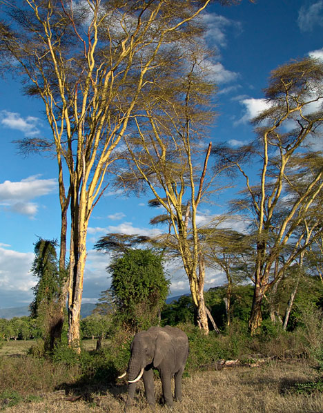 Elephant & Yellow Fever Acacia. Tanzania. January, 2004