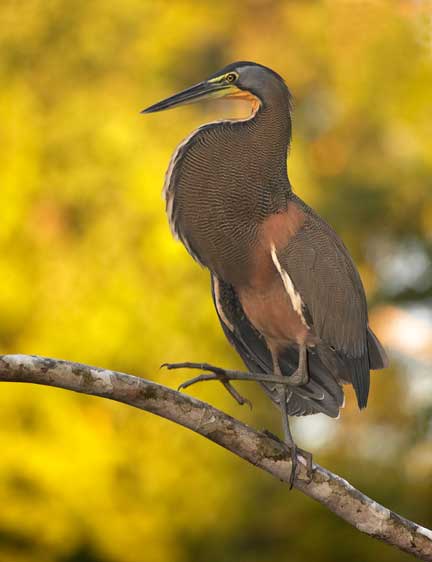 A very early morning boat trip on a secluded canal near Tortuguero brought us close to a pair of Tiger Heron standing on a fallen tree in the river. The male, seen here, was courting the female and both were completely oblivious to us. We were able to get within about 15 feet of the pair and shot dozens of frames as the male postured and preened and the female remain aloof but close by. (No, I’m not anthropomorphizing).