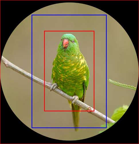 The blue rectangle shows what a 35mm film, or a full-frame digital SLR will record.