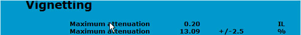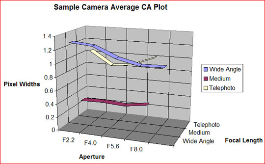 measurements taken at three focal lengths, and at selected apertures. The vertical