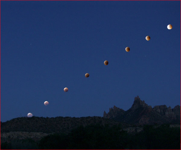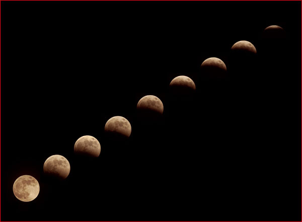 Doing multiple exposures of a lunar eclipse is common practice, but Jim has created a particularly appealing composite.